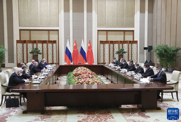 习近平强调,面对深刻复杂演变的国际形势,中俄矢志不渝深化背靠背战略协作,肩并肩维护国际公平正义。这是对中俄两国乃至世界都具有深远影响的战略抉择,过去、现在、将来都不会动摇。双方要继续保持密切高层交往,始终坚持“四个相互坚定支持”共识,有力支持彼此维护主权、安全、发展利益,有效应对外部干涉和地区安全威胁,维护国际战略稳定。双方要密切在国际事务中的协调配合,在抗击疫情、提振经济、应对气候变化等国际社会急难愁盼的问题上展现大国胸怀,拿出大国作为。