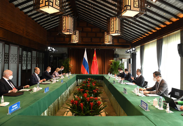 2022年3月30日,国务委员兼外长王毅同来华出席第三次阿富汗邻国外长会的俄罗斯外长拉夫罗夫在安徽屯溪举行会谈。