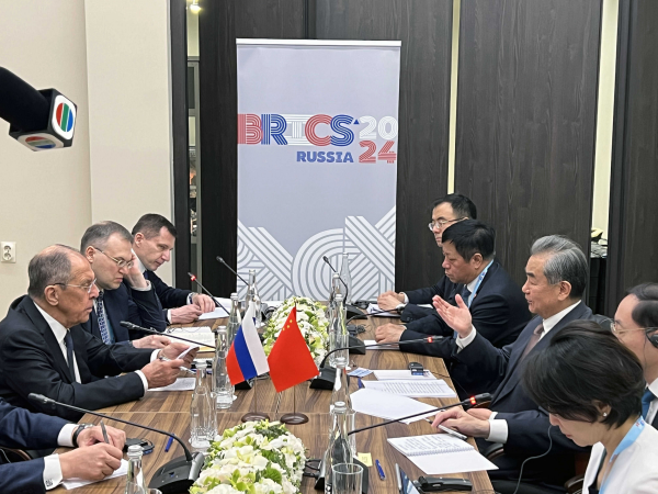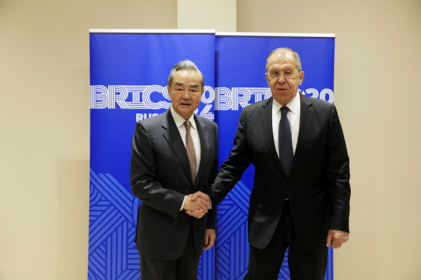 当地时间2024年6月10日,中共中央政治局委员、外交部长王毅在下诺夫哥罗德会见俄罗斯外长拉夫罗夫。