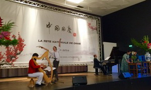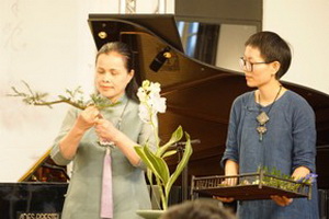今年国庆招待会与插花及茶艺展示结合举办。中外嘉宾浏览了从中国汉代到当代不同艺术风格的插花作品,并在花的海洋里欣赏了中法艺术家联袂演唱的童声《国家》和男女声《我爱你,中国》。在耳熟能详的《茉莉花》曲调中,芭蕾舞与插花组合表演珠联璧合,融汇中西艺术精粹,赢得阵阵掌声。随着“La Traviata(祝酒歌)”的响起,宾主纷纷举杯祝愿,将招待会推向高潮。