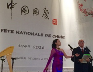2016年9月27日,驻斯特拉斯堡总领馆在橘园举办庆祝中华人民共和国成立67周年招待会。法国东部大区议会主席代表费德希克、斯堡共同体主席埃尔曼、斯堡副市长娜维尔和格赛尔、法前对外贸易部长弗朗索瓦·伊斯特、各国驻欧委会大使、驻斯堡总领事、各界人士及华人华侨与留学生代表约350人出席,共庆新中国67周年华诞。