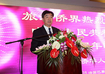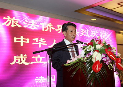 法国华侨华人会主席池万升代表旅法侨界致辞。他说,多年来,伴随着中法关系的发展,旅法侨社在不断壮大的同时,进一步加强团结,在重大问题上保持一致,共建和谐侨社。他表示,旅法侨界将继续共同努力,为祖(籍)国的建设和发展、为中法友谊贡献更大的力量。