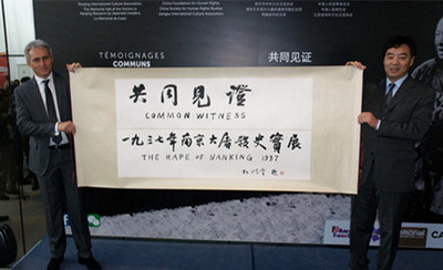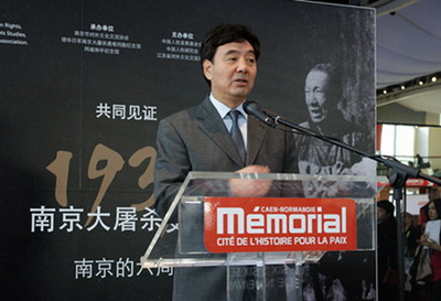 2016年10月22日,《共同见证:1937南京大屠杀》史实展在法国冈城和平纪念馆开展。驻法国大使翟隽、中国人权发展基金会副秘书长王健林、江苏省对外文化交流协会副会长杨立群、侵华日军南京大屠杀遇难同胞纪念馆馆长张建军、法国冈城市长布鲁诺、冈城和平纪念馆馆长格里马尔迪等百余位中外嘉宾出席展览开幕式。