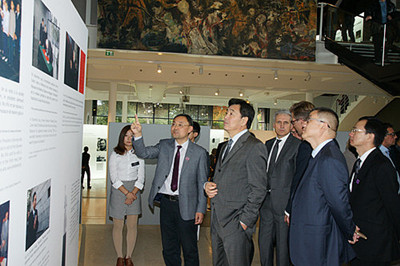 翟隽大使和布鲁诺市长共同展开写有“共同见证:一九三七年南京大屠杀史实展”的横幅,为展览揭幕。随后中外嘉宾共同参观展览。