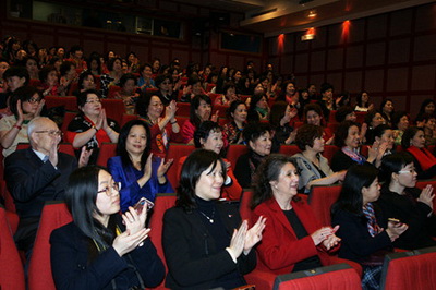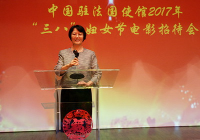 2017年3月4日,驻法国大使夫人王新霞举办“三八”国际劳动妇女节电影招待会,与旅法侨学界等妇女代表近200人共同庆祝“三八”妇女节。