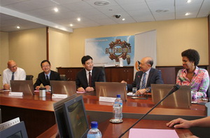 | 翟隽大使与马提尼克大区议会主席里兹会谈 | 翟隽大使与大区议会负责人共话友谊 |