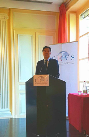 2017年4月12日,驻法国大使翟隽应邀出席法国葡萄酒和酒精饮料出口商联合会年会并发表演讲。酩悦轩尼诗集团董事长兼法国葡萄酒和酒精饮料出口商联合会主席纳瓦尔先生以及100余名法国知名酒商出席。