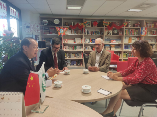 19日,董总领事走访蒙市孔院,同孔院共建方蒙彼利埃三大副校长科波拉尼、孔院法方理事会主席雷斯伯和法方院长裴滢等就孔院未来发展进行座谈,随后看望正在上课的少儿班学员,赠送大熊猫、中国结、书籍等,并同师生亲切交流。