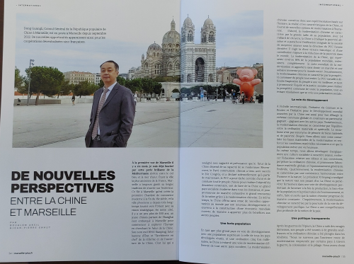 2023年5月6日,驻马赛总领事董广利在《马赛+》杂志发表《中法地方合作的光明前景》署名文章,就中共二十大主要成果,特别是中国式现代化的深刻内涵和为世界提供的新机遇,中共以人民为中心的发展思想,坚定不移实施对外开放战略,“一带一路”倡议、全球发展倡议,以及中法全面战略伙伴关系框架下的中法地方务实合作潜力和美好未来等进行深入阐述。全文(译文)如下: