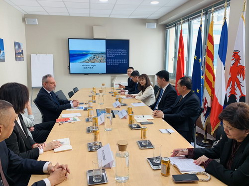 2023年5月11日,驻马赛总领事董广利在尼斯市政府与厦门市副市长庄荣良共同会见尼斯市主管国际关系和友城事务的副市长克里斯蒂安·艾米尔。