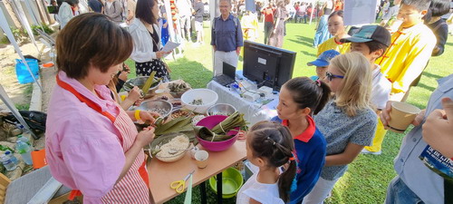 活动中,吉他弹唱、传统乐器和曲目演奏、诗朗诵、傣族舞、武术、美声独唱等表演精彩纷呈,中华美食令来宾味蕾大开,剪纸、中医、茶艺、端午习俗等展台沉浸式体验令来宾流连忘返。