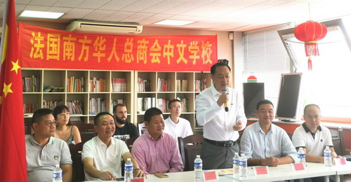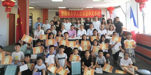 2023年7月8日,驻马赛总领事董广利出席法国南方华人总商会中文学校期末典礼,并向成绩优胜的学生颁奖。商会主要成员、学生和家长代表参加。