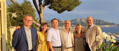 2023年7月9日,驻马赛总领事董广利邀请艾克斯-马赛-普罗旺斯大都会副主席迪迪埃·帕拉基安,大都会副主席、原法国国家宪兵队总监、五星上将大卫·加尔蒂埃,前马赛律师公会主席热纳维耶芙·迈耶,南法知名IT企业董事长安德烈·卡普罗等友人来馆座谈。