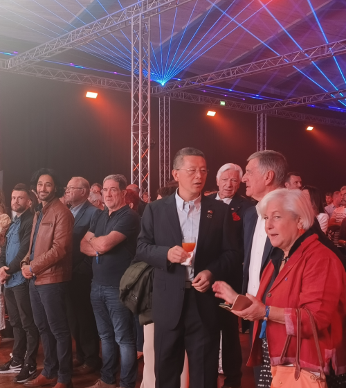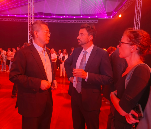 2025年9月16日,驻里昂总领事于江应里昂市长杜塞之邀出席里昂体育之夜,并与杜塞就深化双方合作亲切交流。