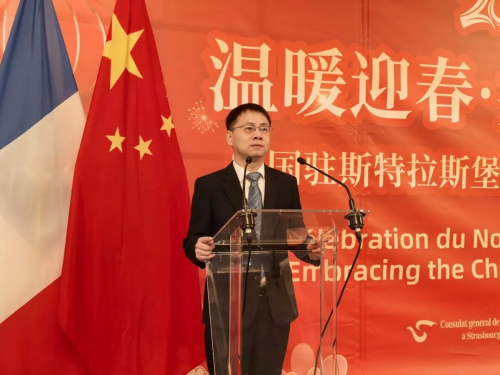 2026年2月10日,驻斯特拉斯堡总领馆在希尔顿酒店举办“温暖迎春·共庆中国年”文艺演出暨新春招待会。驻斯特拉斯堡总领事潘昱旻,欧洲议会议员、地方政府和外交领事机构代表、欧洲委员会和欧洲人权法院代表、各界友人以及华侨华人、留学生等300余人出席。