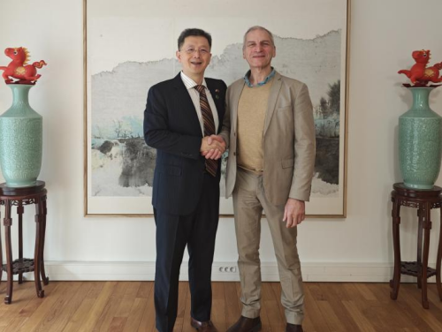 2026年3月31日,驻里昂总领事于江会见法国著名红酒产区博若莱地区贝尔维尔市市长普隆什利。