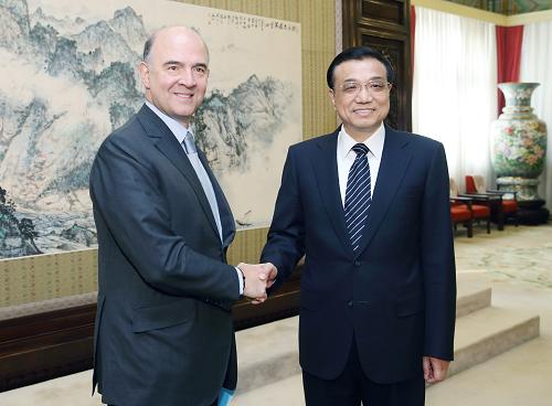 2013年1月8日,国务院副总理李克强在中南海紫光阁会见法国经济和财政部长莫斯科维奇,双方就世界经济形势、中法合作等问题深入交换意见。