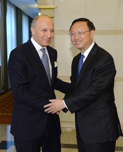 2013年4月12日,国务委员杨洁篪在北京会见法国外长法比尤斯。