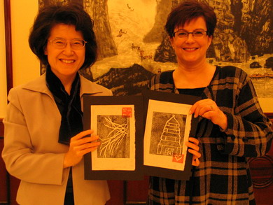 美湾学校的学生们是第一次来到中国大使馆。他们都非常兴奋,也为此做了精心的准备。一年级小学生们满怀深情为大家献上了自己排练的文艺节目。他们演唱的“1234567,我的朋友在哪里”和“找朋友”两首中国儿歌,天真烂漫,吐字清楚,生动活泼,表现了芬兰儿童纯真的感情。为感谢中国使馆为美湾学校开展汉语教学提供的帮助,美湾小学校长巴克南女士向马大使赠送了美湾学校的小学生手工制作的中国水墨画。