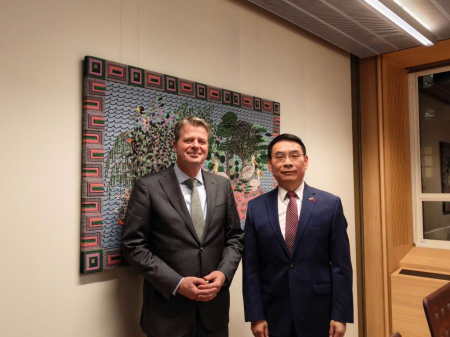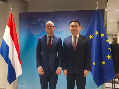 2026年1月6日,驻荷兰大使申博分别会见荷兰外交部对外经济关系总司长斯维尔斯、经济事务部企业与创新总司长奈瑟,就共同关心的问题深入交换意见。申就相关问题阐述了中方立场。