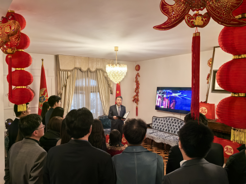 2026年2月10日,驻黑山使馆举办2026年“温暖迎春·共庆中国年”新春招待会。驻黑山大使陈绪峰出席并致辞,在黑华侨、留学生和孔院教师、中资企业代表参会。