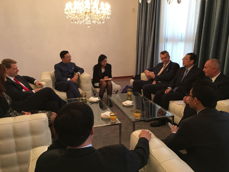 2015年10月27日,外交部副部长程国平出席捷克驻华使馆举办的国庆招待会,同捷国务秘书布鲁萨、捷驻华大使塞奇卡就中捷关系、中国—中东欧国家合作等问题交换了意见。