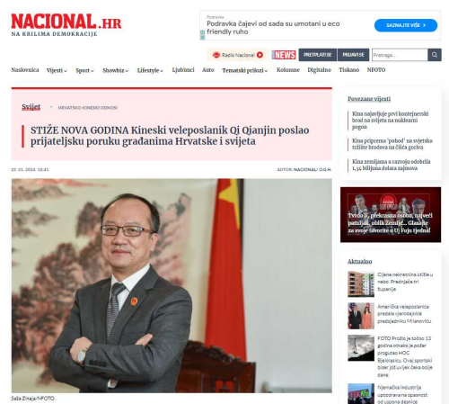 2024年1月25日,驻克罗地亚大使齐前进在克最具影响力的政论杂志之一《国家》发表署名文章《团结协作渡难关,命运与共创未来》。全文如下: