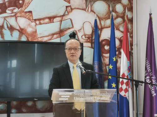 2024年1月29日,驻克罗地亚大使齐前进应邀访问萨格勒布大学经济管理学院,为学院及在此访学的上海交通大学师生作“破解世界困境的中国信心、中国智慧和中国行动”讲座。萨大经管学院院长马里斯等近百人参加。