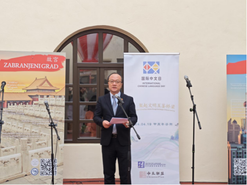 2024年4月18日,驻克罗地亚使馆联合萨格勒布大学孔子学院在萨格勒布布雷佐瓦奇科格中学举办“中国文化进校园”暨2024年国际中文日活动。驻克罗地亚大使齐前进、中学校长耶伦斯基、孔院中外方院长等出席,500余名师生参加。