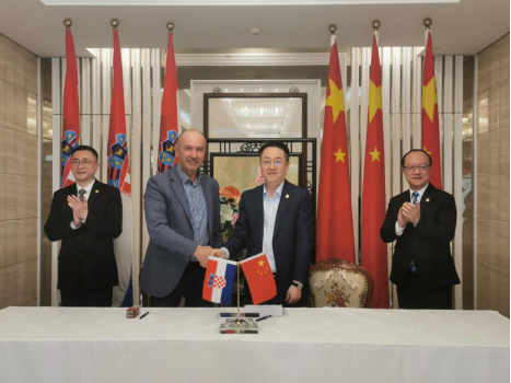2024年4月17日,驻克罗地亚大使齐前进会见访克的上海体育大学党委书记李崟、中国乒乓球学院院长施之皓一行和克乒乓球协会负责人琴吉奇。