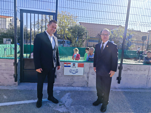 2025年11月10日,驻克罗地亚大使齐前进访问蒂斯诺市,与市长亚雷布会谈,出席该市市庆日活动,并参观“小贝壳”幼儿园。