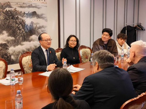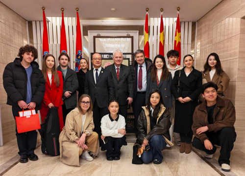 2026年3月18日,驻克罗地亚大使齐前进会见克前总统约西波维奇、维恩大学校长莫尔纳尔和访克的北京艺术传媒职业学院师生。