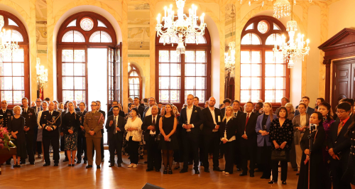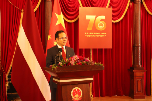 2025年9月23日,驻拉脱维亚使馆举行庆祝中华人民共和国成立76周年招待会,驻拉脱维亚大使唐松根致辞。拉各界人士及在拉华侨华人等约300人出席。