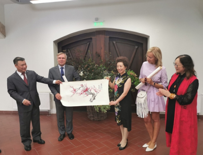 2019年7月1日,“一带一路 翰墨传情”中国书画展在维尔纽斯大学植物园画廊开幕。驻立陶宛大使申知非出席并致辞。维尔纽斯大学植物园园长斯克里代拉、立首任驻华大使沃韦里斯等立各界友好人士、华侨华人代表50余人出席并观展。