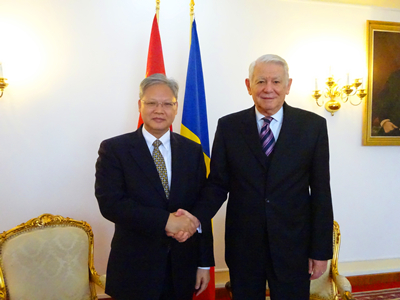 2017年1月19日,驻罗马尼亚大使徐飞洪拜会罗新任外交部长梅莱什卡努,罗外交部国务秘书格奥尔基策在座。
