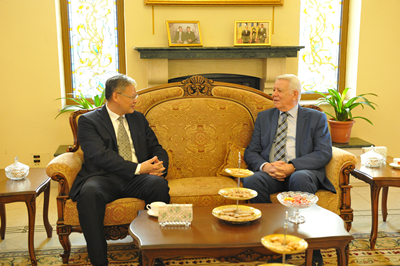 徐大使表示,“一带一路”重大合作倡议提出以来,从顶层设计到项目落实已取得诸多务实成果。为进一步凝聚共识、加强合作、促进共同发展,中方将于5月14日至15日举办“一带一路”国际合作高峰论坛,欢迎罗副总理兼环境部长加夫里列斯库率团出席高峰论坛的高级别会议。我们期待此次盛会圆满成功,也预祝罗方代表团参会取得丰硕成果。当前中罗关系发展良好,两国就“一带一路”开展合作潜力巨大,双方重点可加强在农产品贸易、农业种养殖、基础设施、环境保护、工业园区建设等领域合作,不断丰富双边关系内涵。