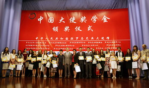 2017年5月,中国驻罗马尼亚大使馆在往届“中国梦企业奖学金”基础上,决定由使馆牵头设立“中国大使奖学金”,旨在罗推广和鼓励汉语学习和教育工作,增进罗民众对华了解和感情。使馆秉持公开、公平、公正原则,稳妥做好奖学金评审工作,由使馆、孔院、华侨社团和中资企业代表共同参与,并向所有捐款方公布款项使用明细和结余情况,接受各方监督。首届“中国大使奖学金”共评选出20名获奖学生和4名获奖教师。