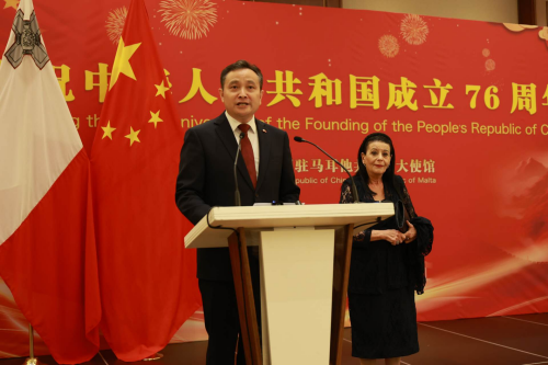 2025年9月23日,驻马耳他使馆举办国庆76周年招待会。驻马耳他使馆临时代办彭熠军和马总统德博诺出席并致辞。马反对党领袖、内阁部长、议员、前政要、驻马使节、中资机构、华侨华人和各界友人500多人参加。