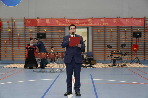 2026年2月21日,驻马耳他使馆与华联会联合举办新春文体联欢会暨“新春暖心包”发放仪式。驻马耳他大使张佐出席并致辞,与在马侨胞、中资机构及留学生代表等400余人共庆马年新春。