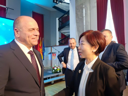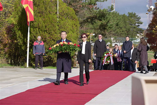 2025年11月11日,驻北马其顿大使蒋小燕应邀出席北马其顿库马诺沃城市日纪念活动,并向烈士纪念碑献花。活动后,蒋大使同迪米特里埃夫斯基市长友好交流,双方表示愿进一步加强地方交往和务实合作。
