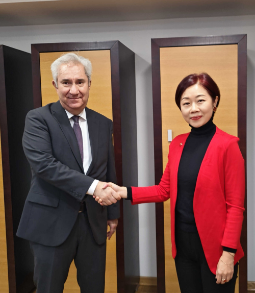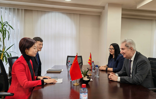 2025年12月4日,驻北马其顿大使蒋小燕拜会北马其顿副总理迪莫夫斯基。