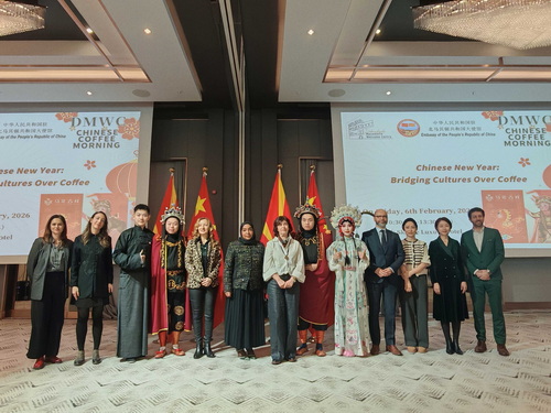2026年2月6日,驻北马其顿使馆和北马“欢迎中心”联合举办中国春节文化主题交流活动。驻北马其顿大使蒋小燕,各国驻北马使节及国际组织负责人、北马各商会、国立高校及国际学校师生代表等参加。