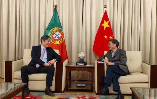 2024年5月28日,驻葡萄牙大使赵本堂会见中外语言交流合作中心主任郁云峰一行,并就在葡萄牙开展中文教育等交换意见。
