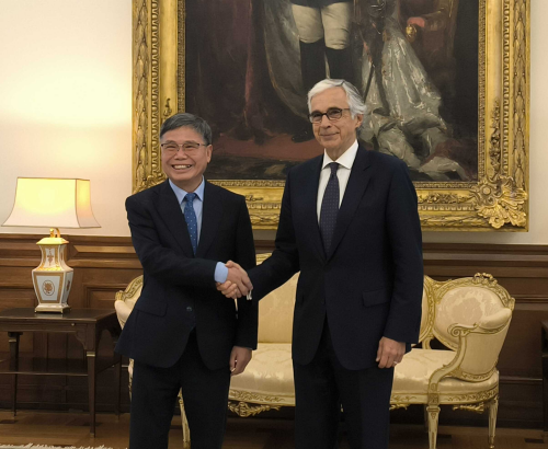 2025年10月14日,驻葡萄牙大使赵本堂辞行拜会葡议长阿吉亚尔—布兰科。