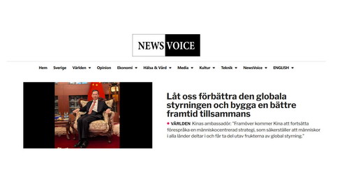 2025年9月20日,驻瑞典大使崔爱民在瑞网络媒体《新闻之声》发表署名文章《完善全球治理 共筑美好未来》,全文如下: