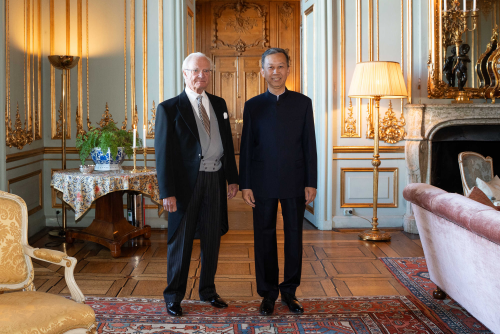2025年10月14日,驻瑞典大使崔爱民辞行拜会瑞典国王卡尔十六世·古斯塔夫。