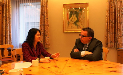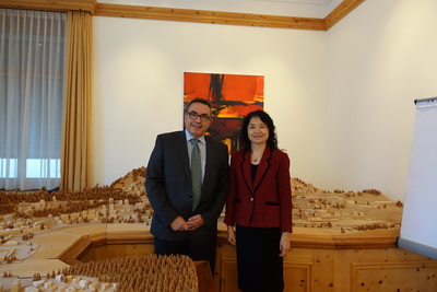 2016年10月28日,驻苏黎世兼驻列支敦士登公国总领事高燕平在瑞士圣莫里茨市市政厅会见市长阿斯普永。