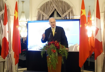 瑞中协会主席瓦格纳致辞,感谢中国总领馆邀请瑞士友人欢聚一堂,高兴地看到友华队伍日益壮大,指出中国取得的发展成就举世瞩目,中国和平外交政策对世界和平与繁荣作出了自己的贡献,瑞中协会始终致力于促进瑞中人民友好,推动各领域的务实合作,将继续为瑞中人民友好合作作出新的贡献。