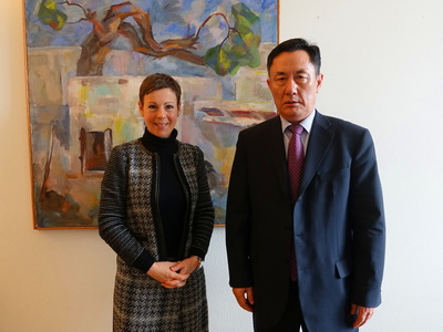 2017年3月20日,驻瑞士大使耿文兵拜会瑞外交部副国秘马婷。