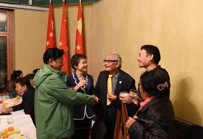 座谈会后,藏胞们与全国人大西藏代表团、总领馆外交官亲切交流,情到深处还唱起了家乡的藏族歌曲,表达亲人欢聚的愉悦和对总领馆的感谢。总领馆精心准备的中国美食色香味俱佳,藏胞们和代表团成员赞不绝口。